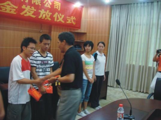 3、公司創(chuàng)始人、關(guān)工委主任謝先興與愛心基金受益者親切握手,勉勵(lì)他們好好學(xué)習(xí),做一個(gè)對(duì)社會(huì)有用的人。