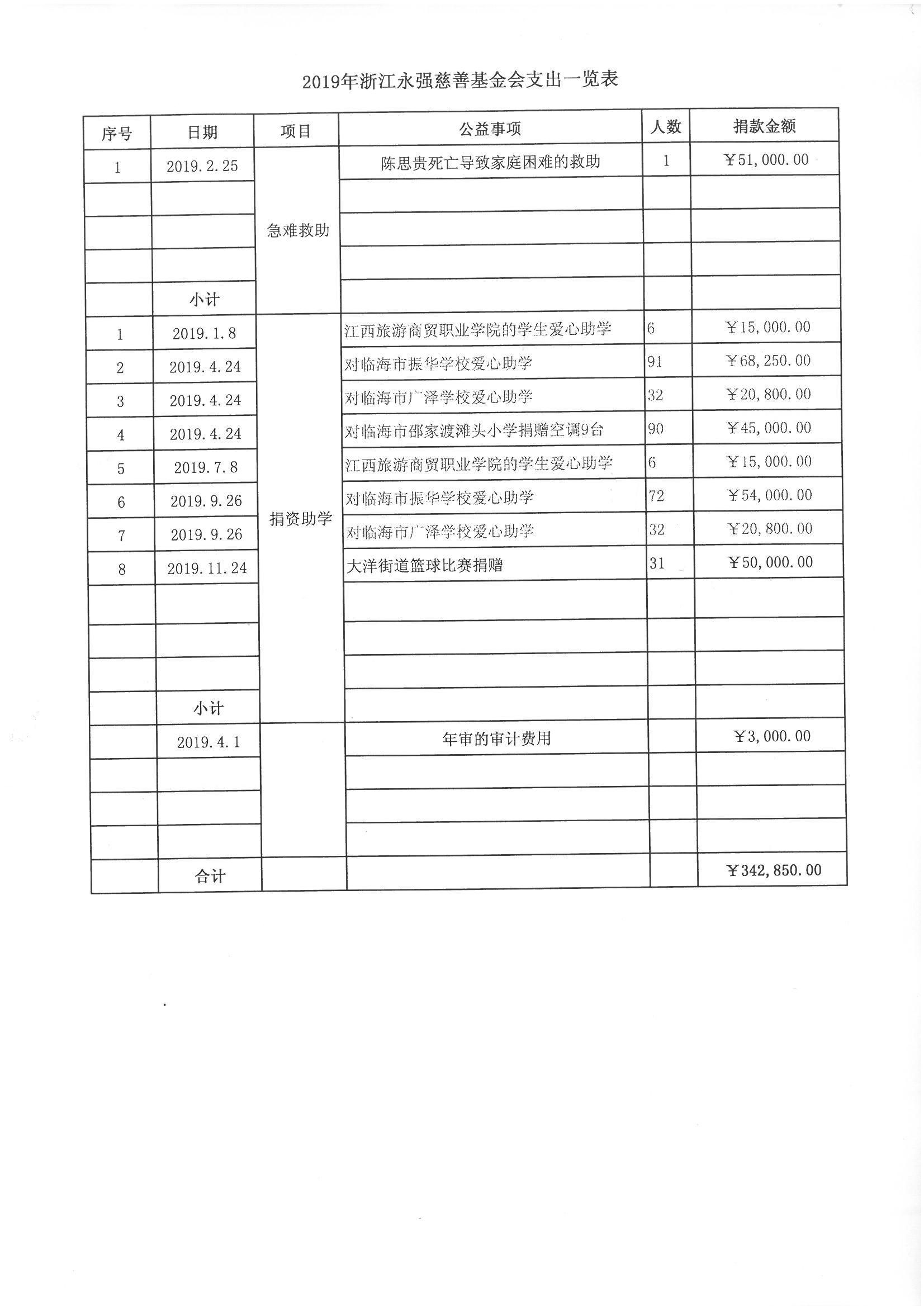 2019年浙江永強(qiáng)慈善基金會支出一覽表
