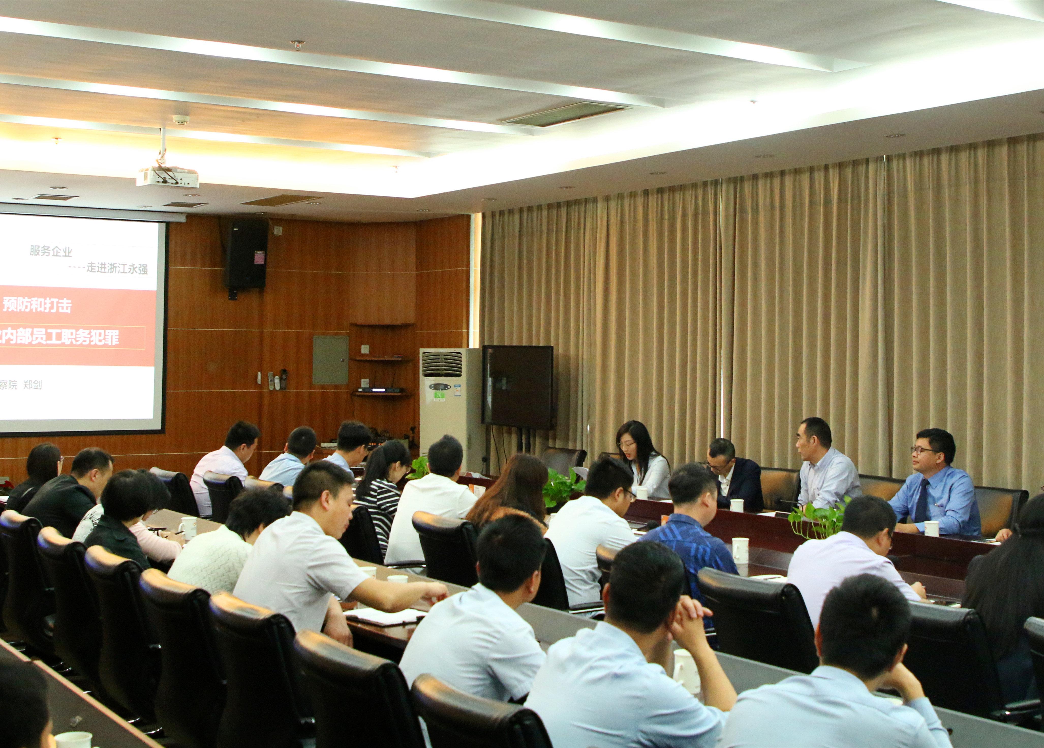 5月17日,集團與臨海檢察院聯合開展“預防和打擊民營企業內部員工職務犯罪”的專題講座