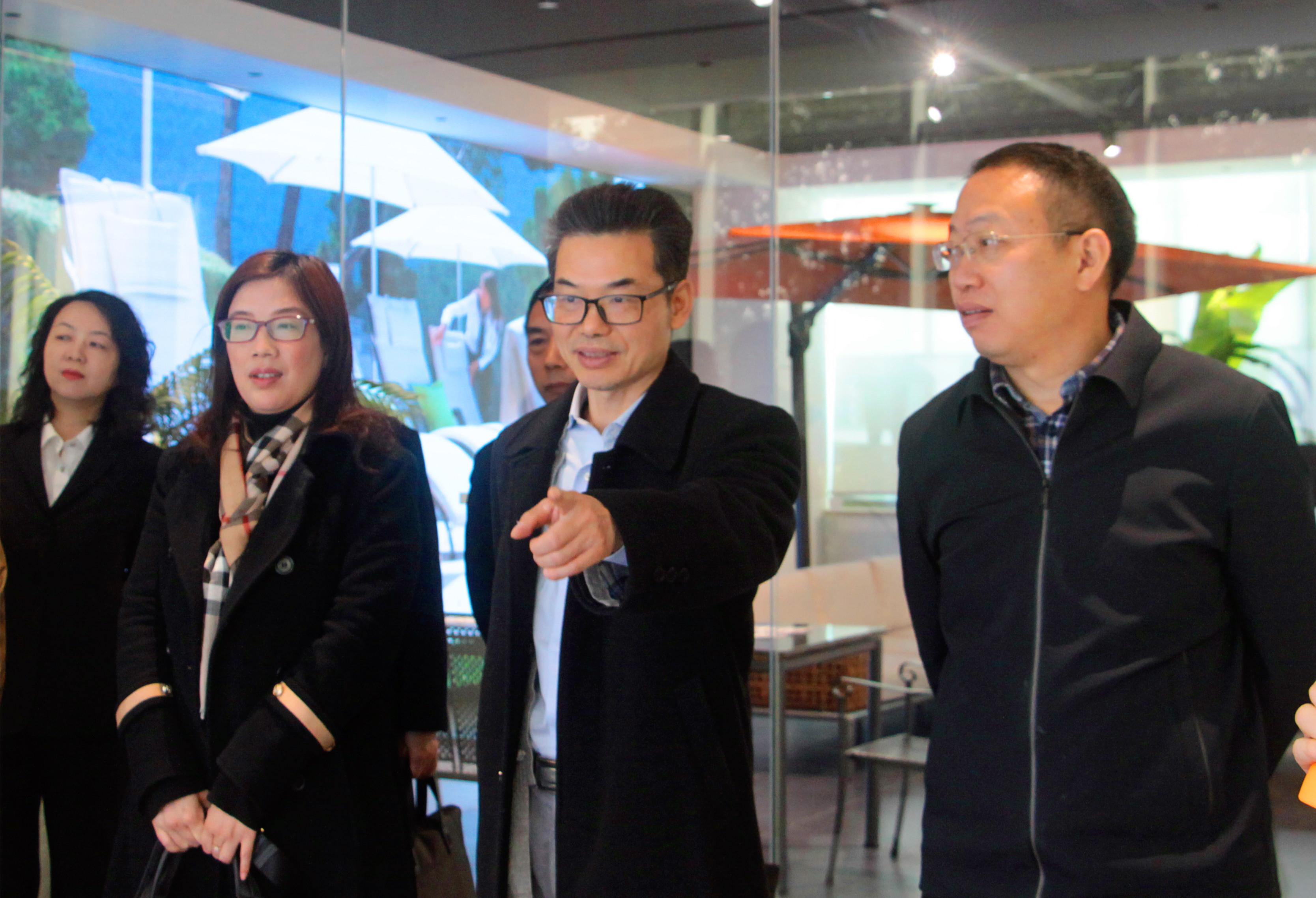 錢(qián)弘道一行參觀了集團(tuán)黨建文化展廳和樣品展示中心,了解企業(yè)發(fā)展歷程、經(jīng)營(yíng)方向、產(chǎn)品類(lèi)別,實(shí)地感受現(xiàn)場(chǎng)產(chǎn)品的新設(shè)計(jì)、新材質(zhì)、新應(yīng)用。