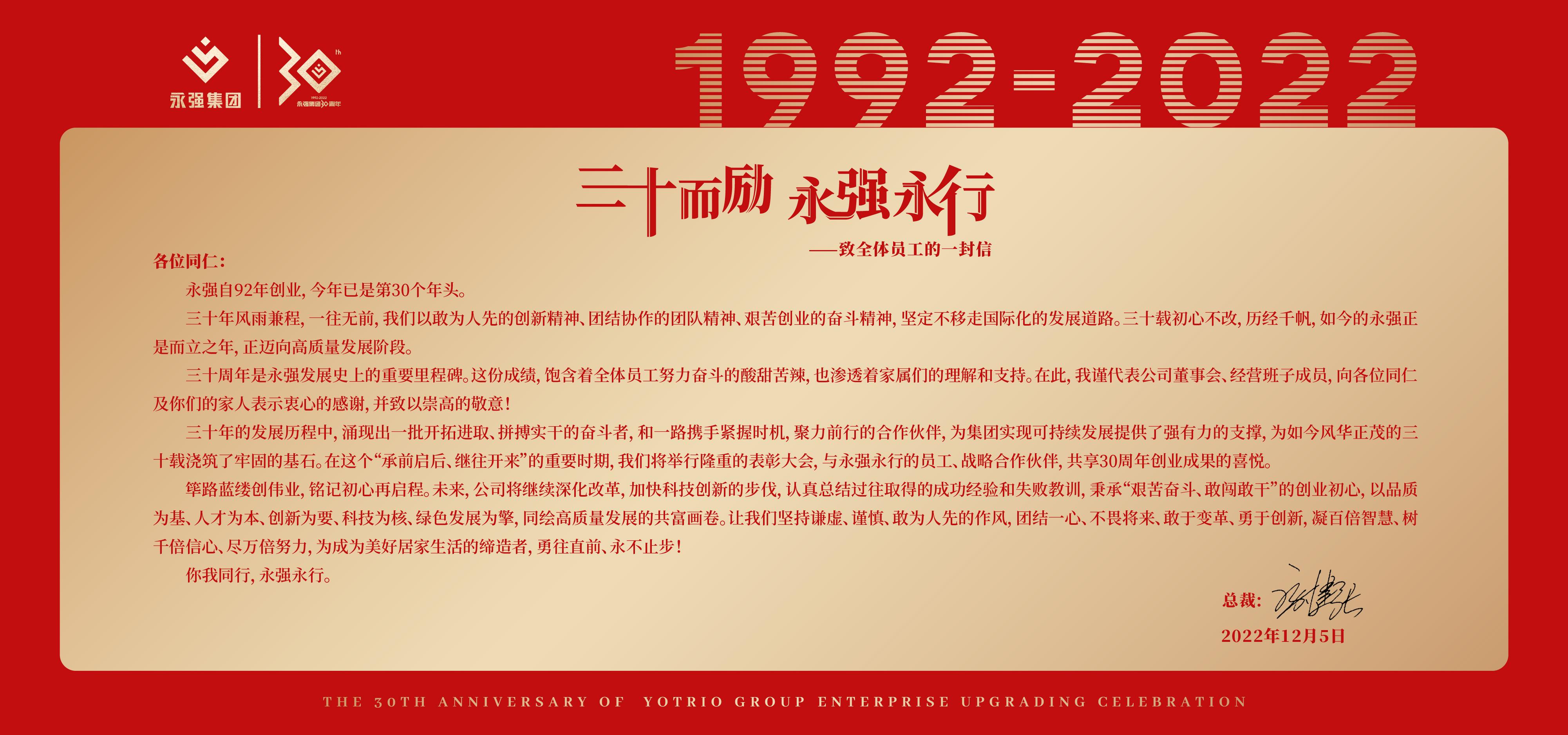 三十而勵 永強永行|致全體員工的一封信